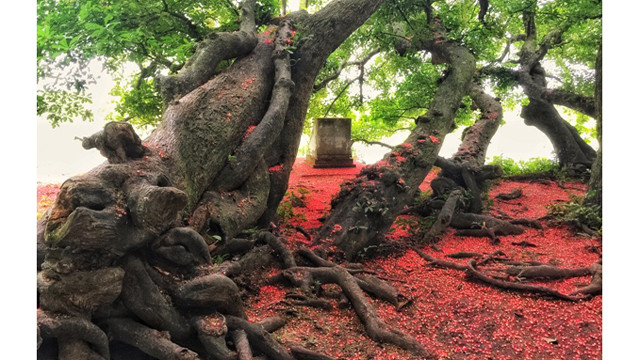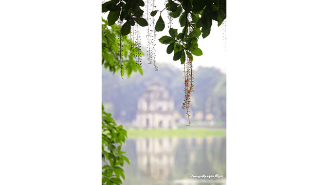 玉蕊花在还剑湖湖畔柔柔地垂下来。 (图片来源:《人民报网》) 不仅在河内,而在富寿省锦溪县章舍乡丘时(Gò Thờ)庙的玉蕊花也绚烂绽放。 成为一个如诗如画的绝美场景。 这里共约85棵玉蕊树,是稀有的玉蕊群体被公认为越南遗产树。 玉蕊群体位于面积为500平方米的土坡。里面还有一个古庙,传说祭祀雄王女儿玉花公主。 玉蕊花为越南风景点缀了彩色。 玉蕊花盛开季节(组图)