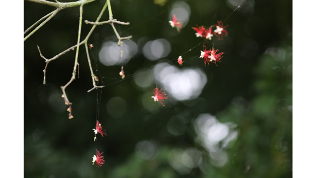 玉蕊花盛开季节于农历6月开始,一直持续到9月底、10月初。到这一季节,玉蕊花在连续几个月陆续绽放,一串串花朵密密匝匝吊将下来,结成一片明丽的大红色。