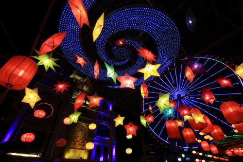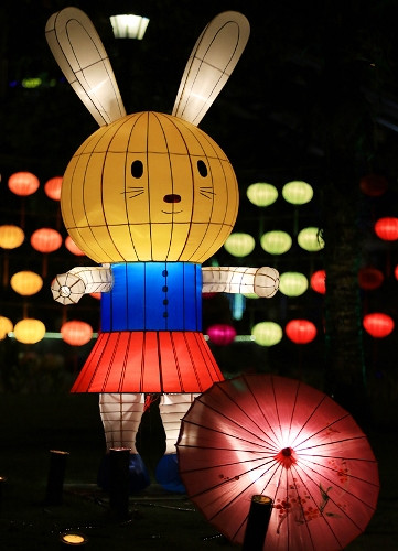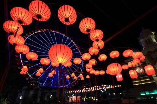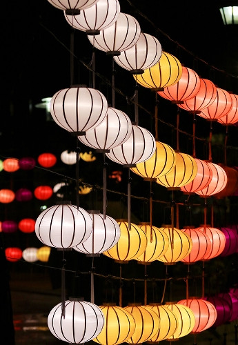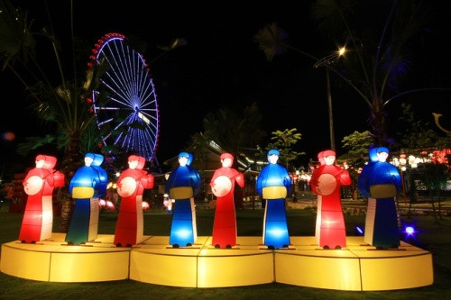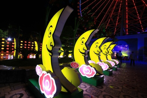 适值农历7月15和中秋节之际,岘港市在洲公园开设了一条灯笼街,让游客感受难忘的中秋节气氛。