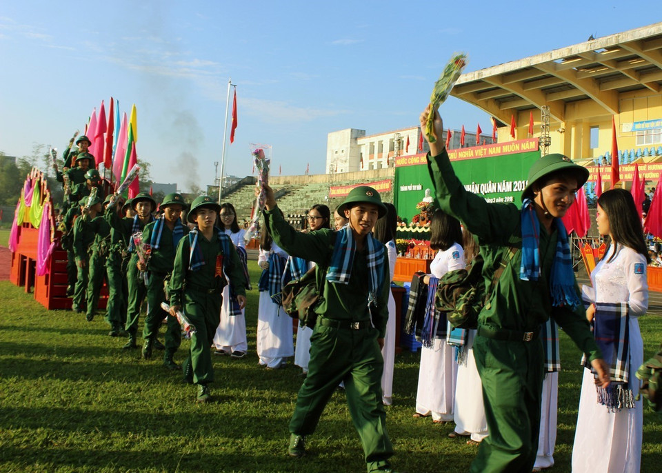 3 月5日越南全国各地一律举行2018年度新兵入伍欢送仪式,旨在热烈欢送优秀青年奔赴军营。