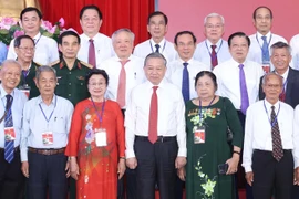 越通社胡志明市——值此越南南方解放、国家统一50周年(1975/4/30-2025/4/30)之际,正在造访胡志明市的越共中央总书记、中央军委书记苏林4月21日会见了参加胡志明战役的将领、人民武装力量英雄、谍报人员、西贡特务、前青年突击队员、火线民工等代表。