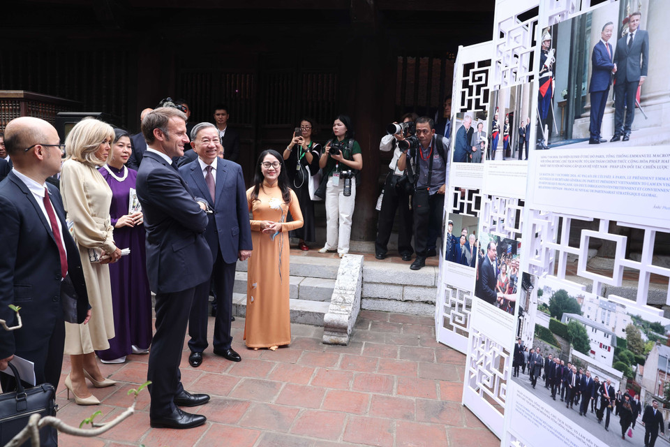 越共中央总书记苏林夫妇与法国总统马克龙夫妇参观河内文庙—国子监