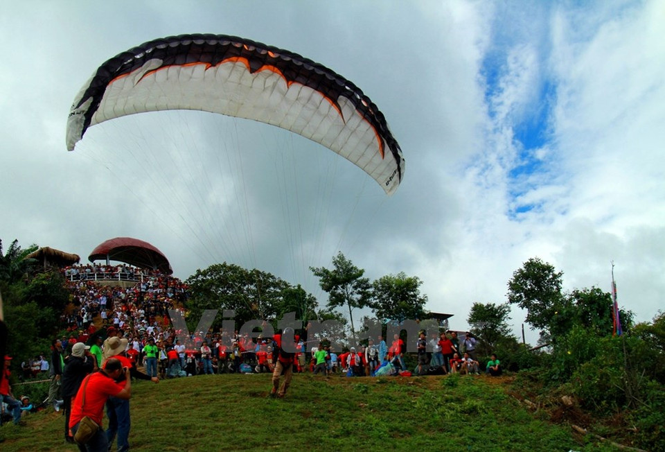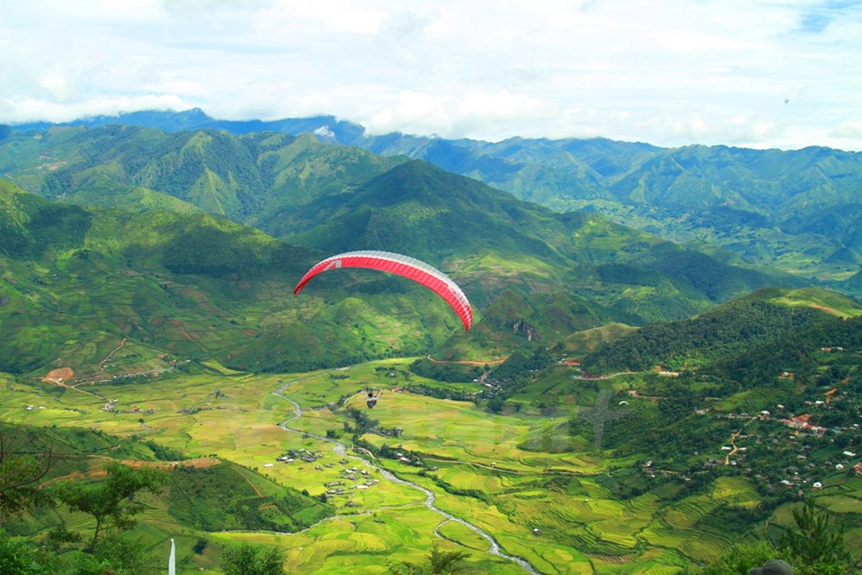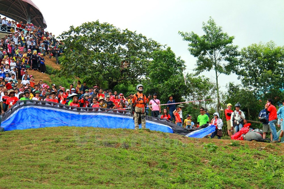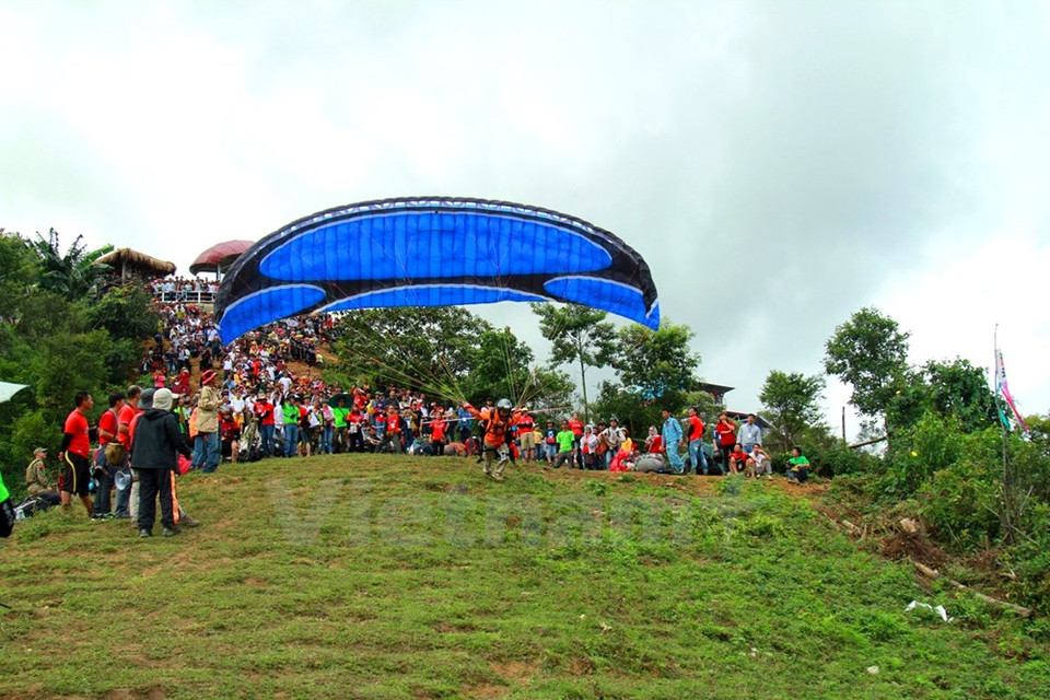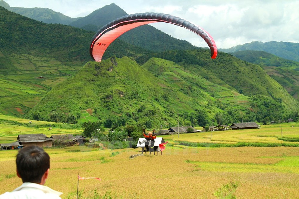 2015 年穆庚寨梯田国家名胜区旅游文化 周框架内, 穆庚寨县政府、北部航空俱乐部和河内越南翅膀俱乐部 9 月 19 至 20 日两天联合举行 蔻帕岭滑翔伞大 赛,吸引数万个游客人次前来参观。