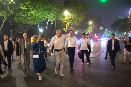 2025年12月7日,在河内还剑湖步行空间举办的“越南幸福节”系列活动框架内,越服巡游活动《百花喜事》(2025婚季主题)精彩上演。